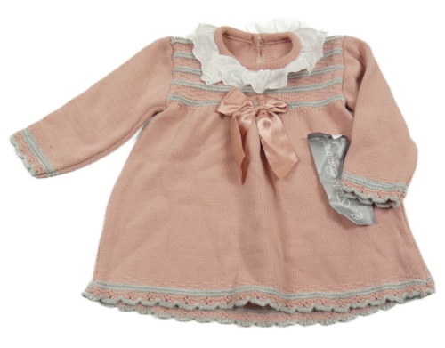 Nové - Růžovo-šedé pletené šaty s volánkem a mašlí