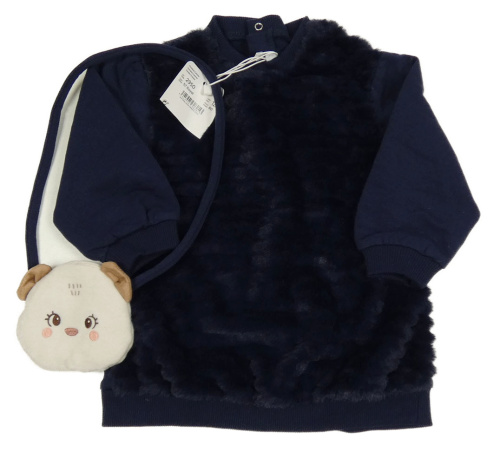 Nové - 2set - Tmavomodré chlupato/teplákové šaty + béžová kabelka Mayoral