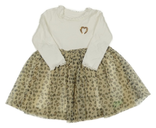 Bílo-béžovo-černé žebrované šaty s tylovou sukní s leopardím vzorem Matalan