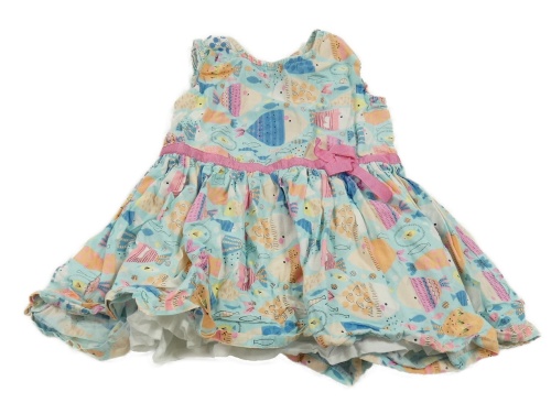 Světlemodro-růžové lehké šaty s rybkami