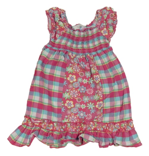 Barevné kostkované plátěné šaty s kytičkami Topomini