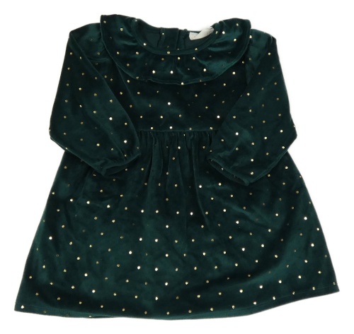 Smaragdovo-zlaté puntíkaté plyšové šaty s volánkem PRIMARK