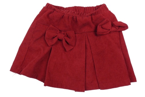 Malinová žebrovaná skládaná sukně s mašličkami