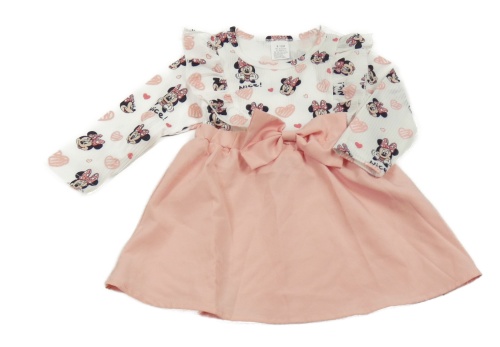 Bílo-světlerůžové šaty s Minnie a mašlí
