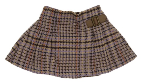 Lila-béžovo-hnědá vzorovaná vlněná sukně s přezkou Next