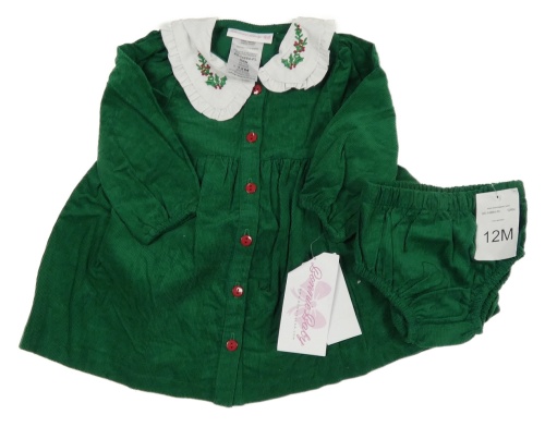 Nové - 2Set - Tmavozelené manšestrové propínací šaty s bílým límečkem + kalhotky na plenky Bonnie Baby