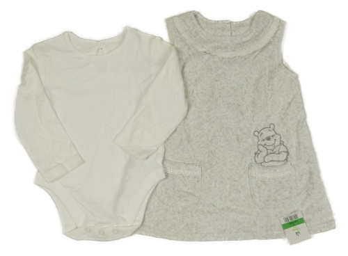Nové - 2set- světlešedé sametové šaty s medvídkem Pú+ bílé body George