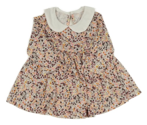 Bílo-hnědo-barevné květované šaty s límečkem Shein