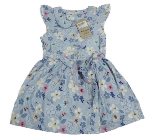 Nové - Světlemodré plátěné šaty s kytičkami a páskem George