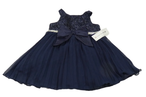Nové - Tmavomodré slavnostní šaty s třpytkami a mašlí