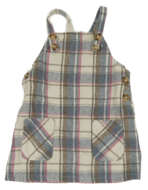 Bílo-šedomodro-růžovo-hnědé kostkované vlněné laclové šaty Primark