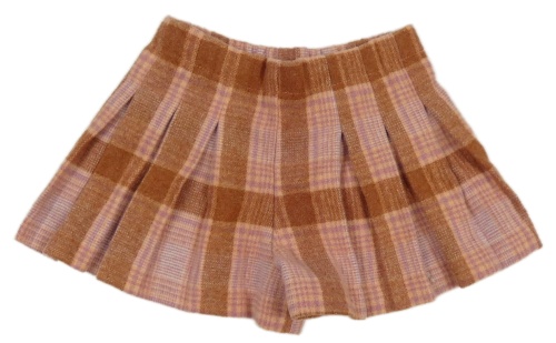 Hnědo-fialovo-broskvové kostkované vlněné sukňové kraťasy Matalan