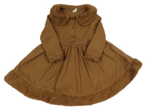 Hnědé žebrované šaty s chlupatými lemy Shein