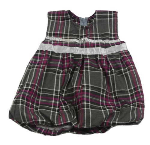 Šedo-růžové kostkované šaty s šedou stuhou