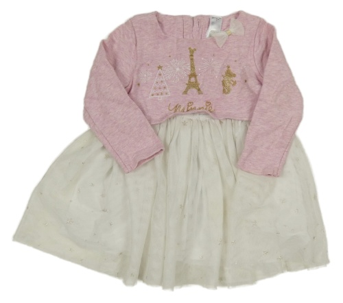 Růžovo-bílé teplákovo/tylové šaty s Eiffelovkou a Minnie C&A