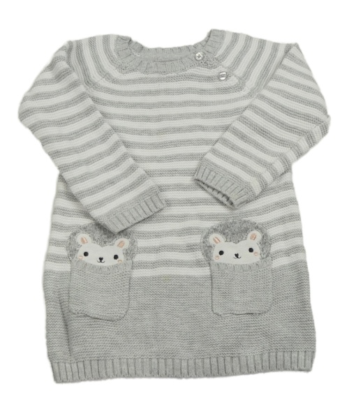 Šedo-bílé pruhované svetrové šaty s ježky Primark