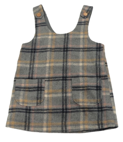 Šedo-hnědo-černé kostkované vlněné laclové šaty Next