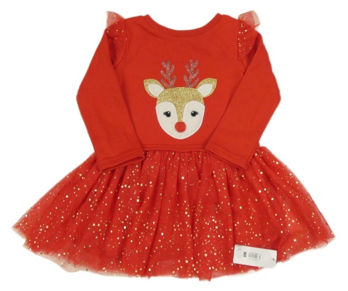 Nové - červené teplákovo/tylové šaty se sobem a zlatými puntíky St. Bernard