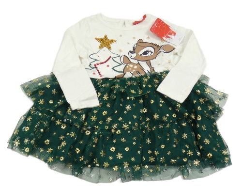 Nové - Bílo-zelené šaty s Bambim a tylovou sukní s vločkami Disney