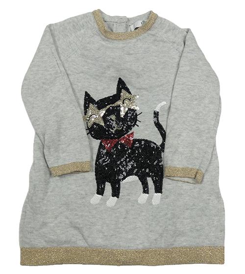 Šedé melírované svetrové šaty s kočkou z flitrů M&S