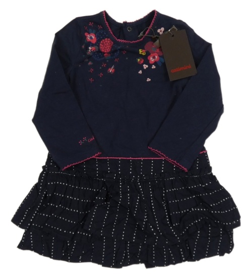 Nové - Tmavomodré bavlněno-plátěné šaty s kytičkami