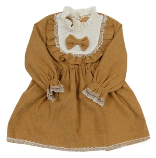 Béžévo-bílé manšestrové šaty s mašlí Shein