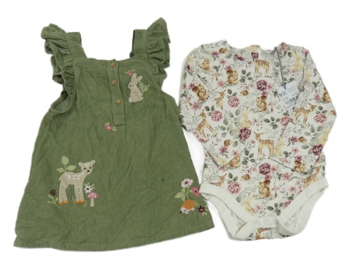 Nové- 2set- zelené manšestrové šaty se zvířátky+ bílé body se zvířátky Tu