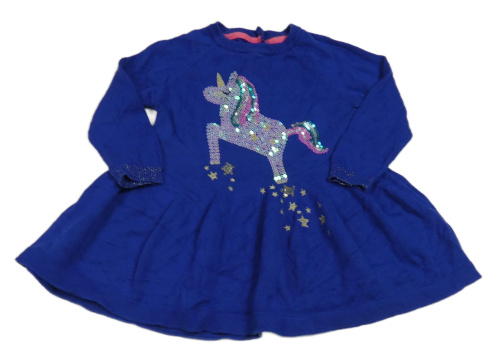 Safírové svetrové šaty s jednorožcem z flitrů M&S