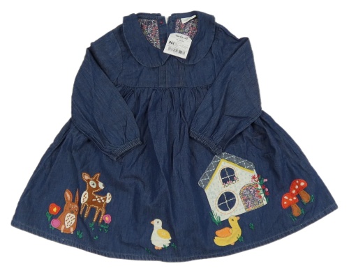 Nové - tmavomodré lehké riflové šaty se zvířátky a domečkem a límečkem Next