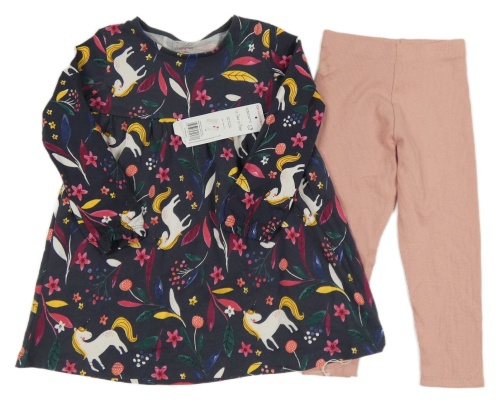 • Nové - 2Set - Tmavošedé šaty s jednorožci a větvičkami + světlerůžové žebrované legíny F&F