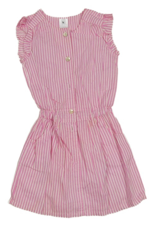 Růžovo-bílé pruhované plátěné šaty s volánky