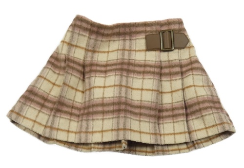 Béžovo-hnědo-růžová kostkovaná vlněná skládaná sukně Next