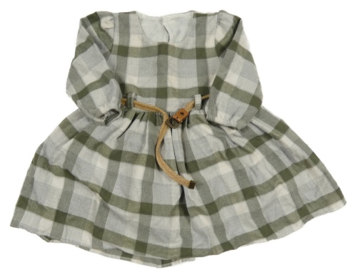 Šedo-khaki kostkované šaty s páskem