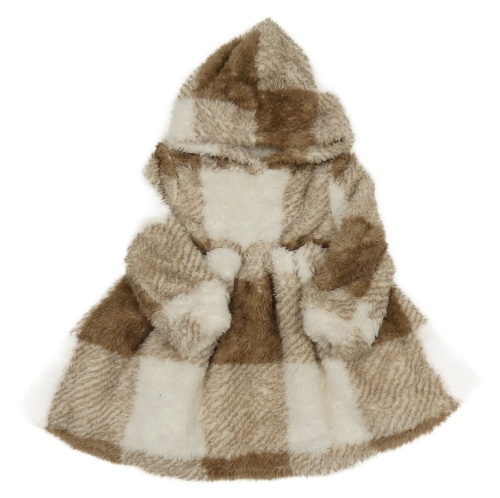 Bílo-hnědé kostkované chlupaté šaty s kapucí Shein