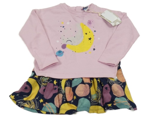 Nové - Růžovo-tmavomodrá tepláková šatová tunika s ovocem Tuc Tuc