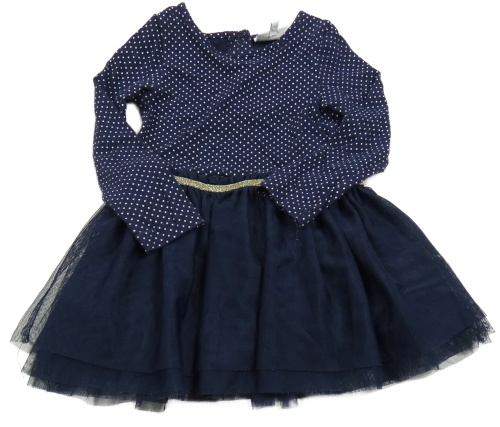 Tmavomodré puntíkované šaty s tylovou sukní Mon Coeur