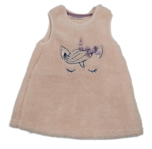 Světlerůžové chlupaté šaty s jednorožcem Ergee