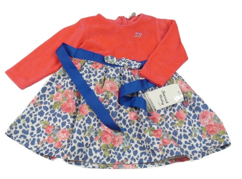 Nové - Neonově růžovo-bílo-modré sametové šaty se vzorovanou sukní