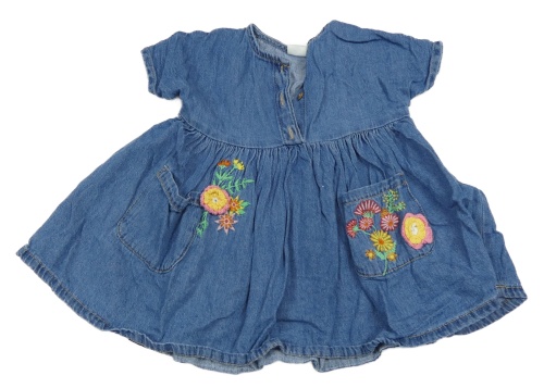 Modré lehké riflové šaty s výšivkami květů Next