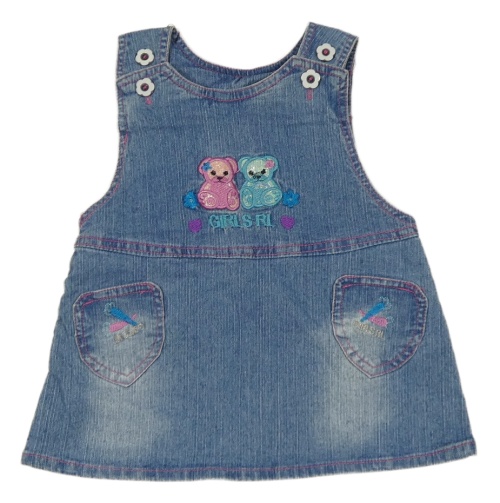 Modré riflové laclové šaty s medvídky