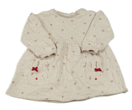 Světlebéžové melírované teplákové šaty s kytičkami a čumáčky/kapsami F&F