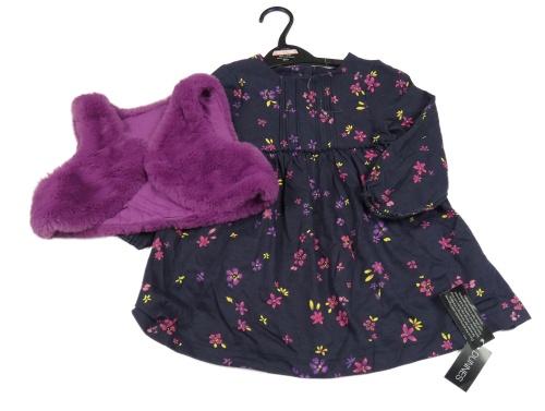 Nové - 2Set - Tmavomodré šaty s kytičkami + purpurové kožešinové podšité bolérko St. Bernard