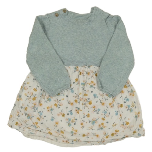 Modro-bílé pleteno/plátěné šaty s kytičkami TU