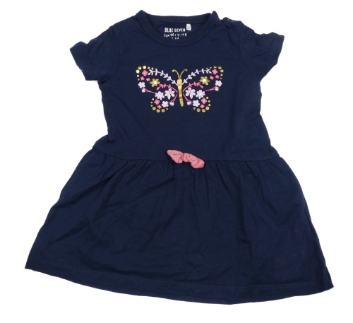 Tmavomodré bavlněné šaty s motýlem Blue Seven
