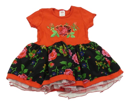 Červeno-černé květované šaty s výšivkou