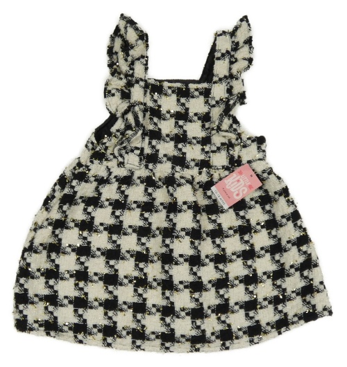 Nové - bílo-černé kostkované třpytivé šaty s volánky Little Kids