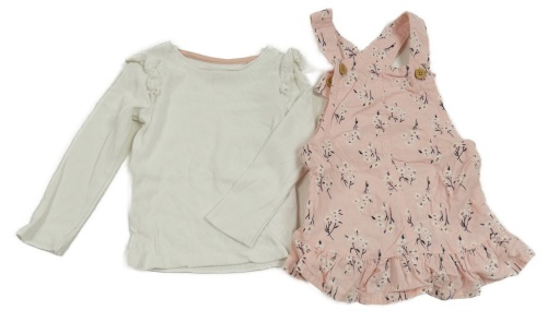2Set - Světlerůžové manšestrové šaty s kytičkami + smetanové triko s volánky F&F