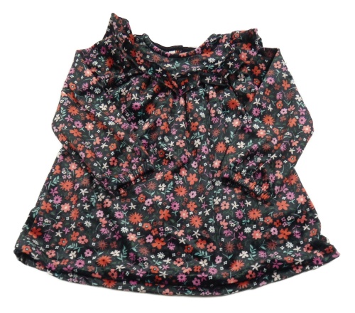Černé květované plyšové šaty s volánem