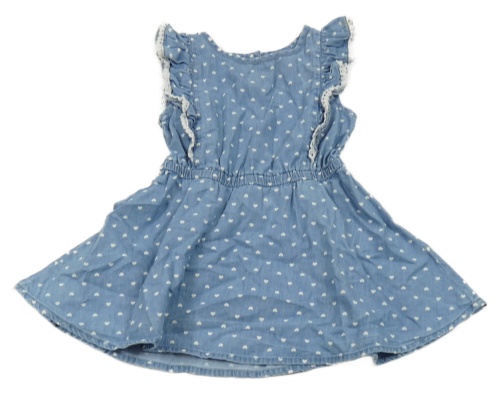 Modré lehké riflové šaty se srdíčky a madeirou Topolino