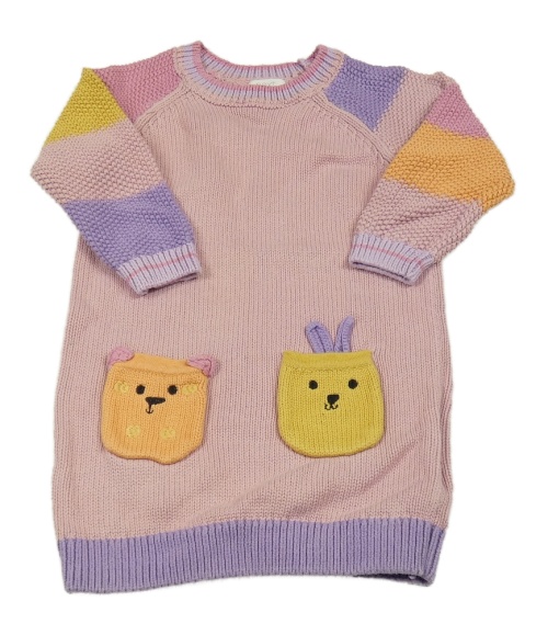 Světlerůžové svetrové šaty s proužky a zvířátky Next